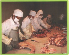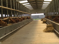 公司直屬優(yōu)質肉牛育肥場,位于平度市田莊鎮(zhèn)宮東村南1公里處,始建于2009年3月,設計存欄3000頭,現(xiàn)存欄1000余頭,占地100多畝,現(xiàn)有建筑面,18600平方米。公司擁有一批具有養(yǎng)牛經(jīng)驗的管理、技術、飼養(yǎng)人員。聘請了全國養(yǎng)牛方面的知名專家作為技術顧問。養(yǎng)牛場現(xiàn)有職工23人,具有初、中級以上技術等級和從事養(yǎng)牛5年以上的工人占70%以上,有管理和技術人員5人,其中畜牧獸醫(yī)專業(yè)中、高級以上職稱3人。本公司通過食品安全認證、質量體系、無公害認證,是國家地理標志保護產品。是肉牛定點屠宰單位。被評為“島城市民最喜愛的農產品品牌”、第一批“平度好食材”。本公司肉牛養(yǎng)殖場喂牛所用飼料全部采用自己配制的飼料,主要使用大豆、玉米、麩皮,大豆經(jīng)炒料機炒熟后再分碎飼喂,無任何添加劑。公司有火鍋料理店6處,安排從業(yè)人員80多人。公司擁有年屠宰加工1萬頭肉牛的屠宰生產線,嚴格執(zhí)行國家GB/T17238-2008鮮凍牛肉分割標準,并按伊斯蘭清真屠宰要求進行屠宰分割以及排酸嫩化處理。我公司生產的牛柳、西冷、肉眼、上腦、S腹肉等產品主要銷往上海,北京,南京,濟南,青島,煙臺等大中城市的四、五星級酒店,用作西餐、韓餐、日餐、中餐等深受用戶青睞。